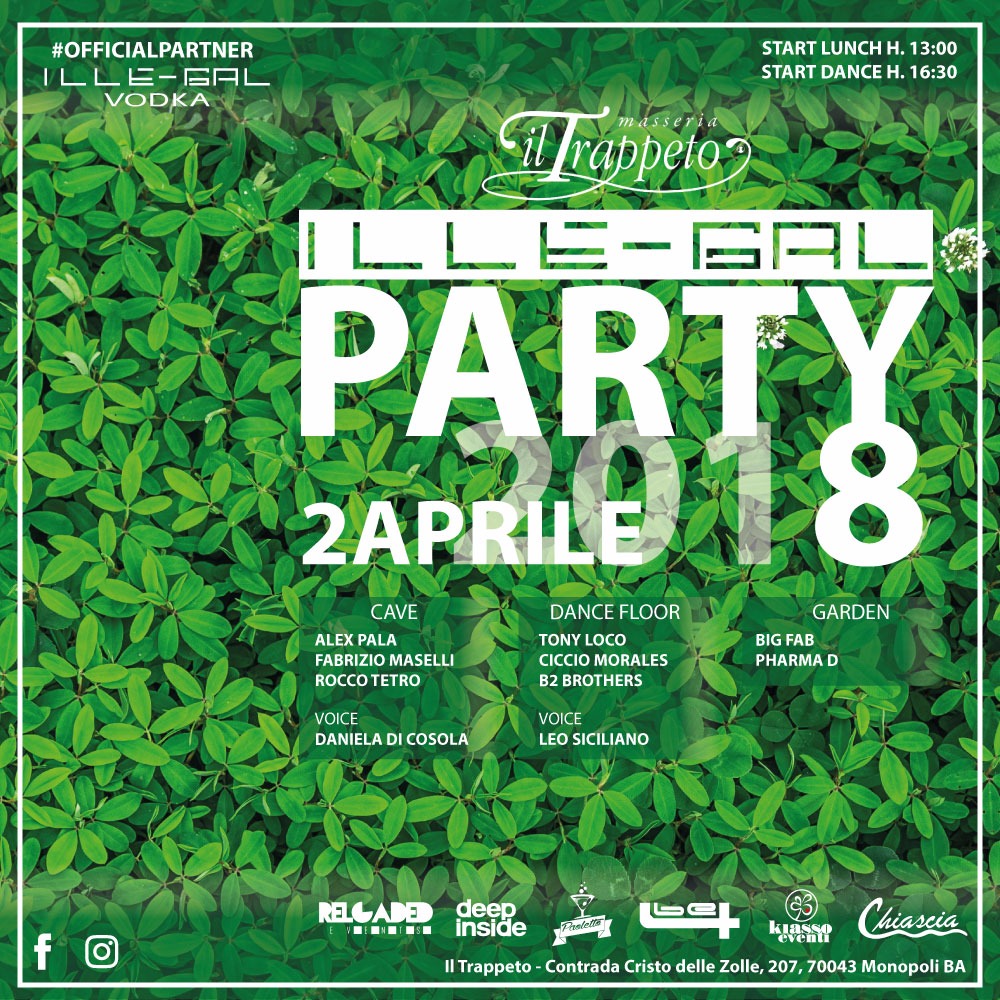Don't miss the ILLE-GAL Party on 24 April 2018 in Monopoli (BA), Italy.